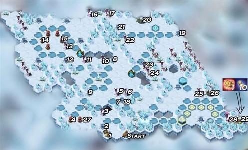 总而言之点燃火盆和炮台的顺序就是如上图的数字所示,然后记得顺便将路上的关卡解决了,可以拿一些小宝箱奖励。小宝箱奖励中有宝贵的英雄经验,对水晶祭司等级的提升帮助很大。