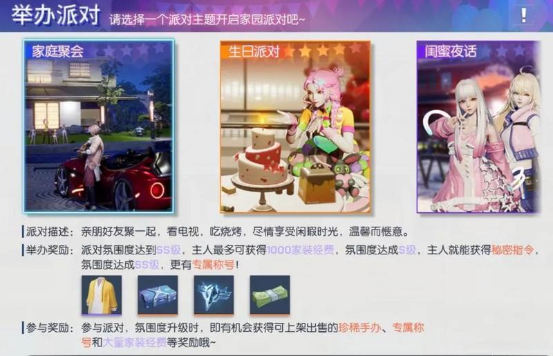开启派对还有相应的游戏奖励,聚会、奖励两者都可兼得,非常适合各位同学约好时间和朋友开启一场属于你们的主题派对!