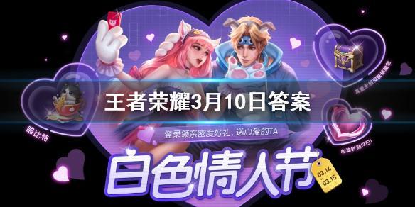 参与活动收集道具“玫瑰”可兑换全新亲密度道具叫什么?这是王者荣耀微信2020年3月10日每日一题问题,回答正确可获得游戏奖励哦!接下来就让我们来看一看答案吧。
