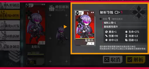 初始2星单位重复获取后,需主动消耗重复单位增加解析度。也可在工厂拆解为超星内核。