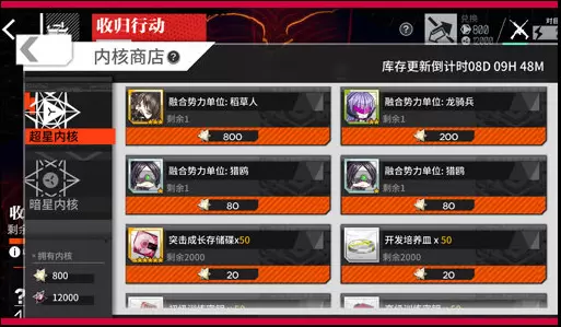 ※暗星内核、超星内核可在内核商店兑换特定融合势力单位或其他融合势力的养成材料。