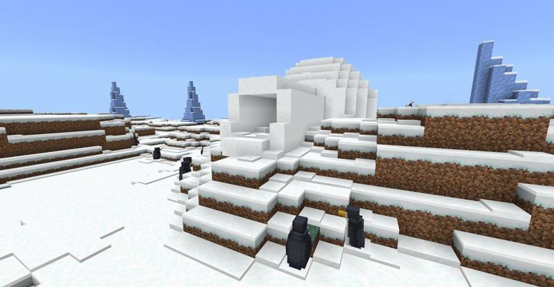 《我的世界》原版中存在冰雪地形,不过根据北极熊、北极狐在现实中的分布区域,原版的雪地对应的是现实的北极,而《天启之境:终与始》所带来的极地则是对应南极洲。