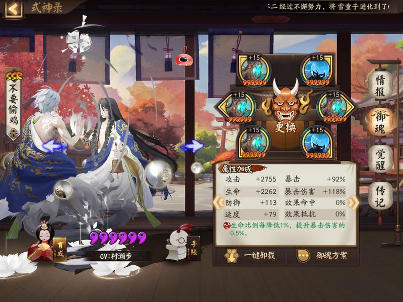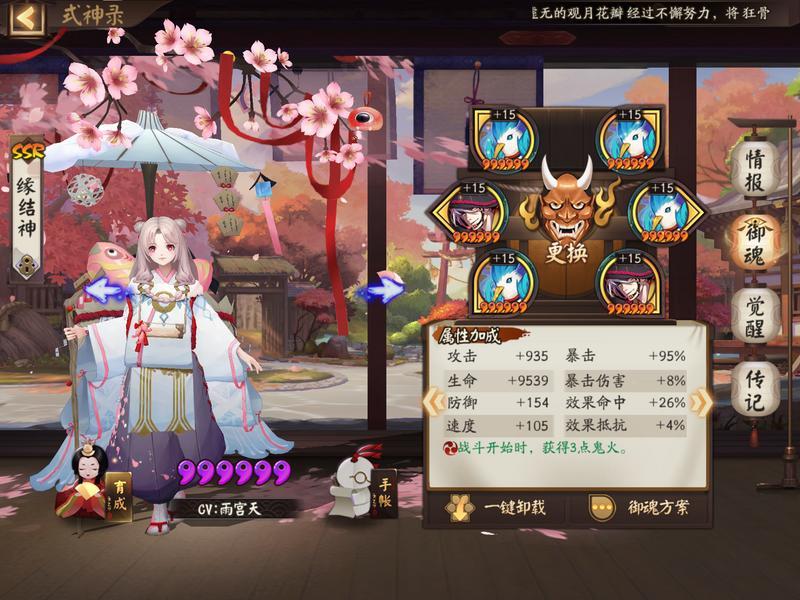 1.式神:缘结神+鬼王酒吞童子+辉夜姬+云外镜+八岐大蛇