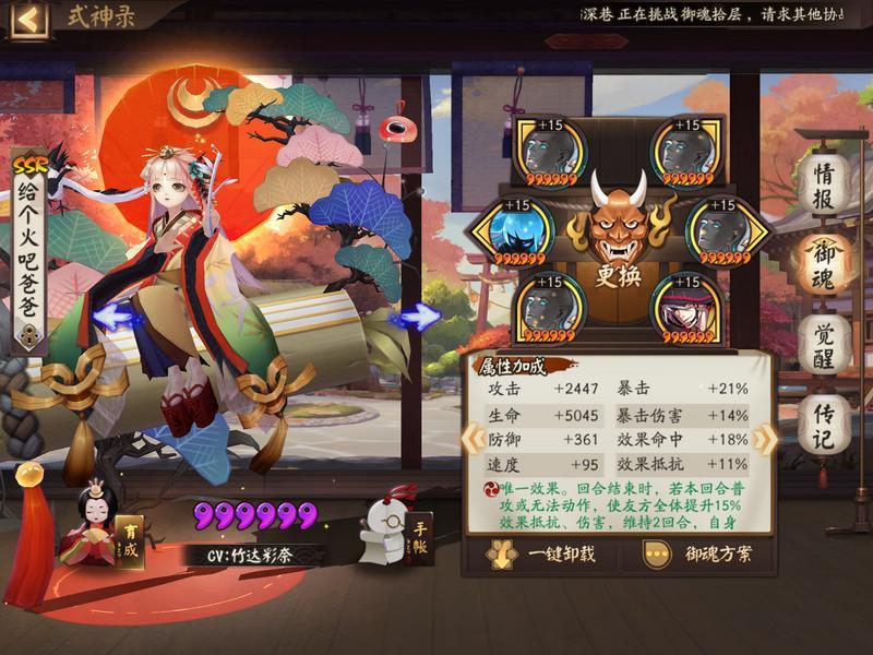 2.配速/御魂:一速招财鬼吞,火灵小缘,涂佛辉夜姬,镇墓兽云外镜,招财大蛇。(详情见下方御魂搭配)