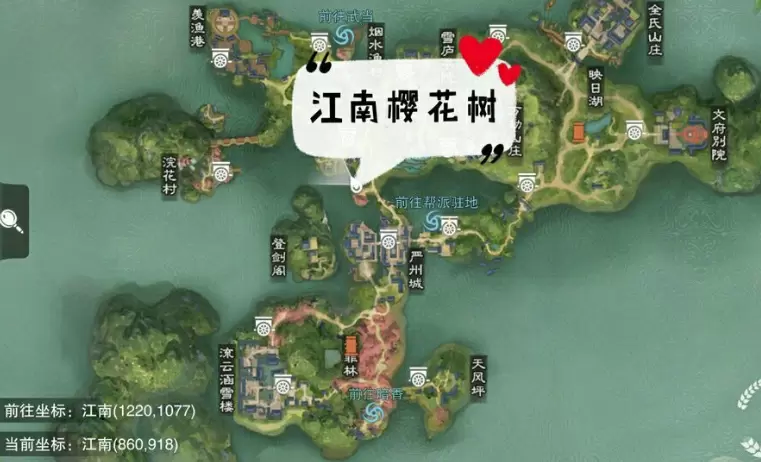 《一梦江湖》2020年3月15日坐观万象打坐修炼地点坐标 江南樱花树
