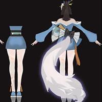在保留不知火舞“火”元素的流动感的基础上,选择了更为神秘的蓝色气焰效果。同时还加入了扇形碎片、狮猫影子等元素作为辅助,使角色的包装更加丰满。