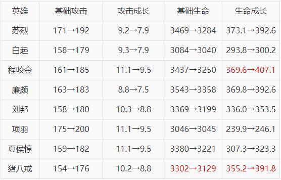 在上次调整的基础上补调了程咬金和猪八戒基础生命和生命成长。