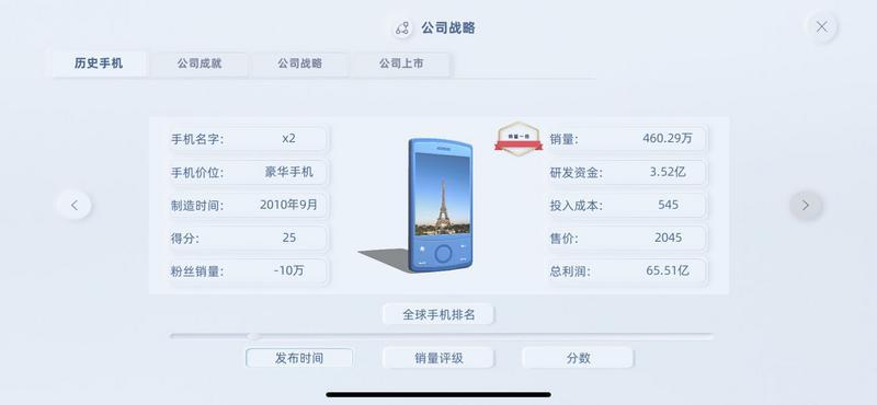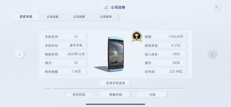 二、让成本最低,然后就是能做最高端就最高端,一直熬到能做高端机就好了,前期做中高端也能轻轻松松一个手机赚几个亿,但是一定不要加配置就自己点员工自动分配就好了,前期十亿没问题,后期一圈这样的方法几百亿,电脑我已经通关无数次了,分享一下这个策略,至于粉丝前期没必要,后期粉丝几万几万加。