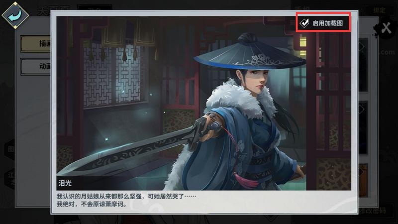 如果勾选插图右上角的“启用加载图选项”,原处于黑屏的加载界面将展示该插图。