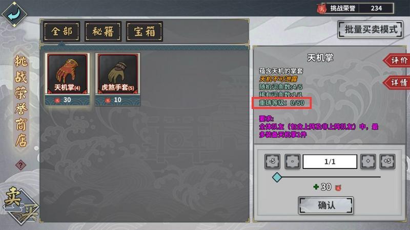 版本更新之后,在行囊和挑战荣誉商店中,装备的详细信息界面可以看到该装备的重铸等级。