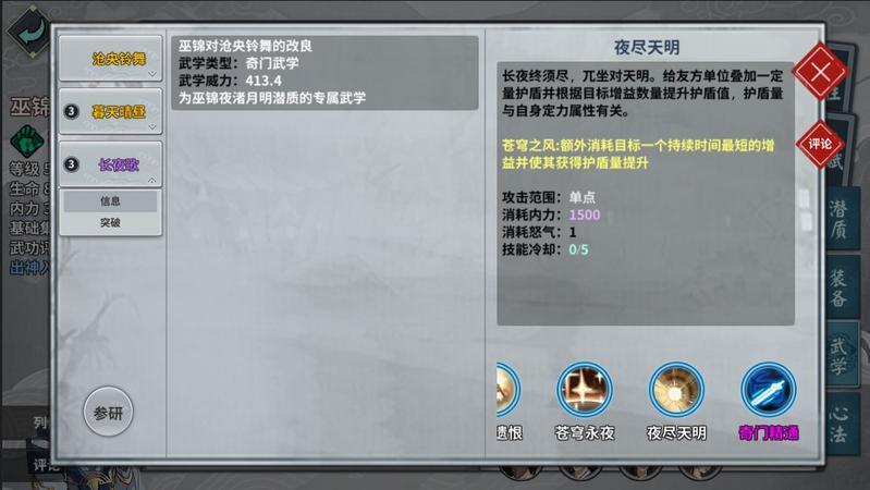 长夜终须尽,兀坐对天明。给友方单位叠加一定量护盾并根据目标增益数量提升护盾值,护盾值与自身定力属性油管。