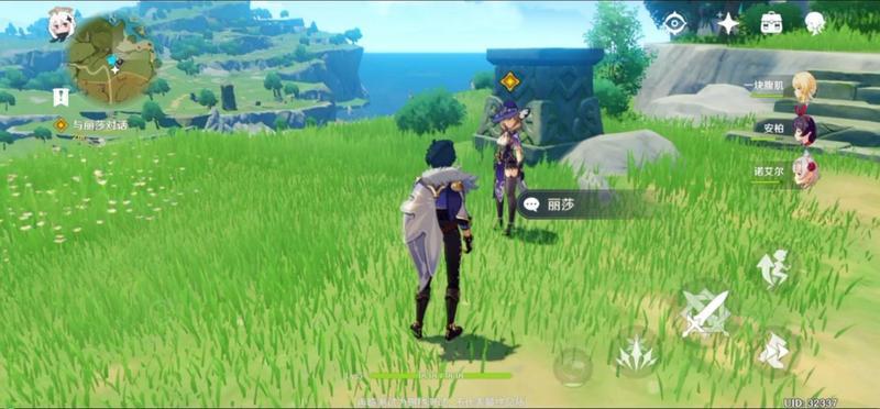 开完大门,会看到几个丘丘人和一个大型水史莱姆,还是在被水围绕的地形,这个时候切换到丽莎,触发感电教学。