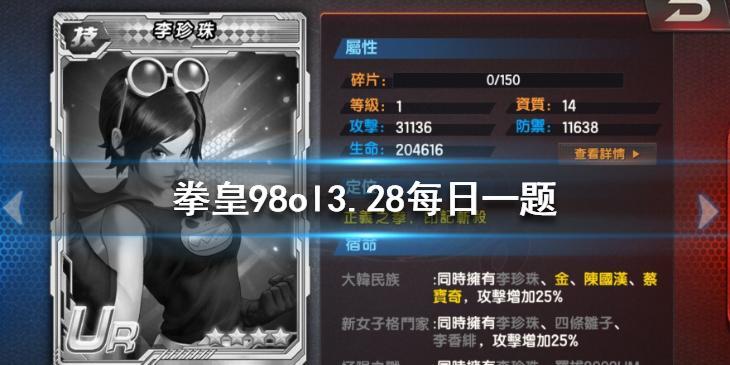拳皇98OL手游3.28每日一题题目