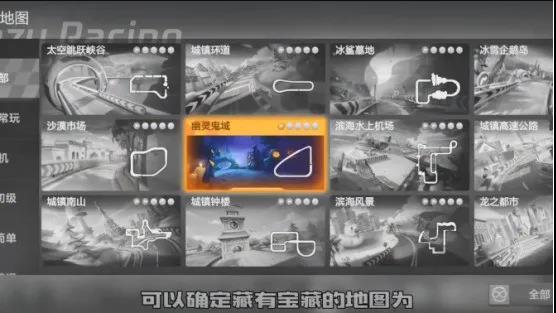 幽灵鬼域的地图结构非常的简单,全程只有3个弯道,能藏的地方并不多,宝藏就藏在起跑后的第二个U型弯中。但别以为这样就能随随便便拿到宝藏,毕竟小乖这个家伙现在学机灵了,懂得利用车友的视野盲区,所以想要拿下宝藏还是要有点小技巧。