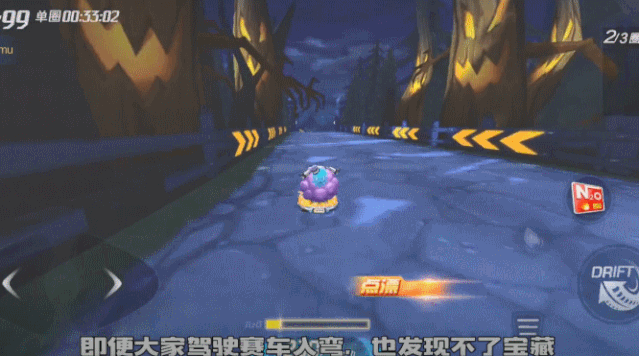 当我们来到第二个U型弯时,对自己漂移技术有信心的车友可以全程贴内弯漂移,宝藏就藏在内弯处。如果觉得自己基本功还不够扎实的车友,可以学宝宝那样,减速慢慢通过,这样宝藏就能十拿九稳啦!
