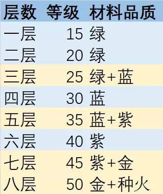 试炼荒庭也是八层。后期主要刷三层五层和七层这三个交叉产出,以及唯一产出种火的第八层这四个副本。