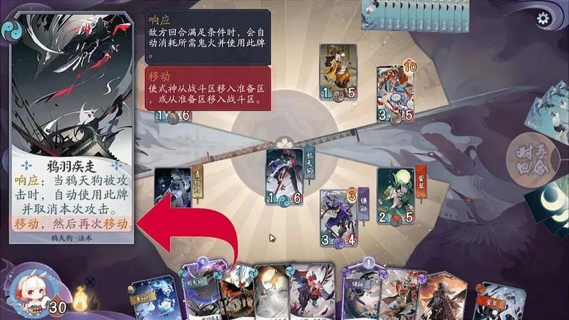 2.进入战斗区和退回准备区都视为一次移动。其他式神进入战斗区挤下鸦天狗也可以触发基础能力。