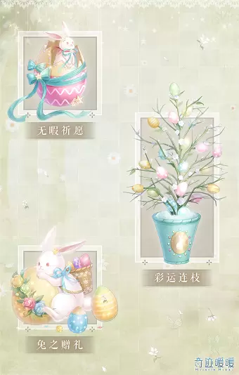 使用风铃花瓣及葱茏绿萝可在“奖励兑换”中兑换精美复活节主题摆件!
