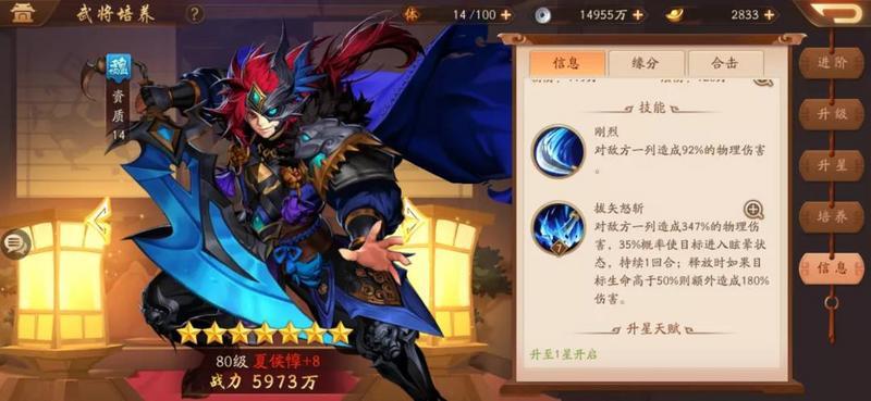 还有一种极限夏侯惇的玩法,小编所在区就有极限培养夏侯惇的玩家,过关斩将的最低战力通关记录都是他保持的。