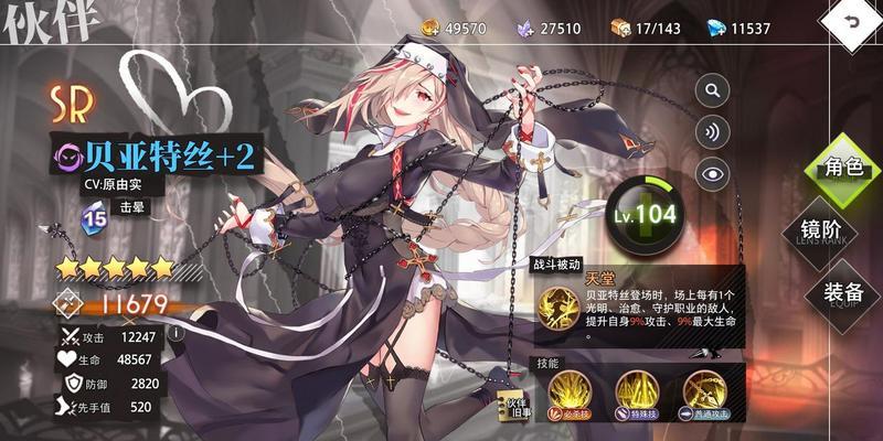 神仙角色。被动高倍率的加成让她成为平民单体输出一姐。猎魇核心角色,竞技场下场对面就可能结束战斗的那个女孩,推图是平民不可或缺的人物之一
