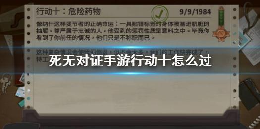 以上就是小编带来的死无对证手游行动十怎么过的全部内容了,希望对小伙伴们有所帮助。