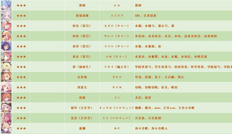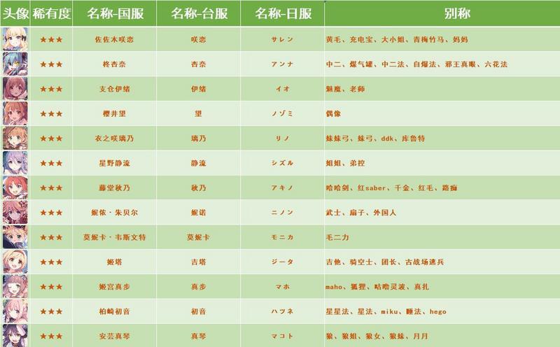 《公主连接》全角色别称外号 国服日服台服名称对照表