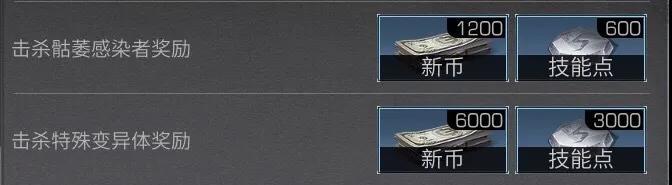 幸存者成功通关后将根据通关时长与击杀类型,获得相对应的金条与技能点等奖励。
