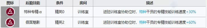 进驻训练室协助位时,特种干员的专精技能训练速度+30%。