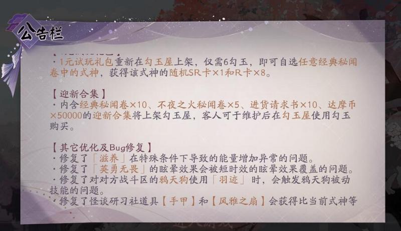 阴阳师百闻牌官方在16日的更新中更新了迎新包。