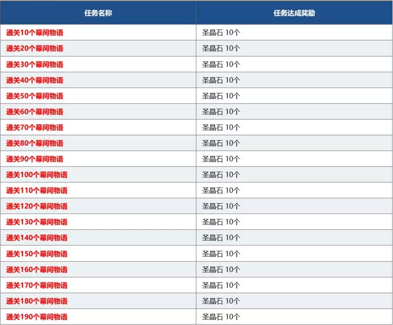 目前已经实装了193个幕间物语副本,每完成10个可以拿10个圣晶石,最多可获得190个圣晶石的补偿。