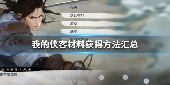 我的侠客材料怎么获得?在游戏中材料的用处很多,做任务需要,npc好感度需要,配方制作同样需要材料。那么都有哪些方法可以让我们快速获得想要的材料呢?下面一起来了解一下吧!