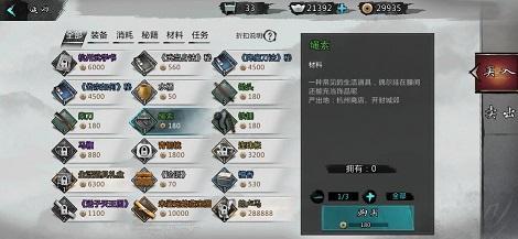 这是最直接的方式,在江湖的五大主城的商人那里都可以买到各种材料,优点是方便快捷,缺点就是主城卖的材料需要铜币且高级的材料还需要主城好感,在游戏前期还是要根据条件来选择购买;