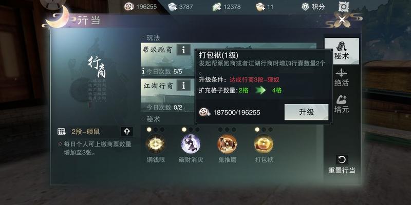 ■想多为帮派赚宝钞、多赚帮贡的卡20万以下不要全部出售再搬一躺火腿:第二趟看出售能卖多少,算上有的宝钞不超过20万就行,回去再搬一趟火腿再全卖。