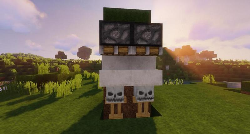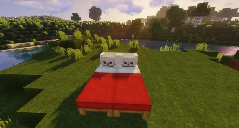 挖空地下一格,放置盔甲架,在盔甲架上放上骷髅头颅,其上放上石英楼梯,再加上向下的活塞,一切准备就绪后,在活塞上放一块红石,骷髅床头完成!