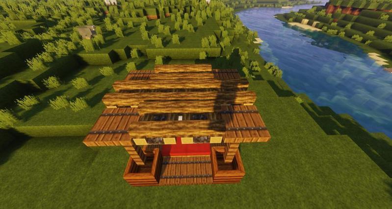 4.放上熔炉、铁砧、木箱等作为装饰,耶!功能齐全的吊床大功告成。