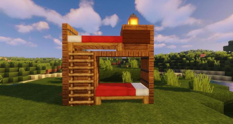 2.然后把上面的床也加上,用灯和告示牌做装饰,再加上楼梯就可以了哟!
