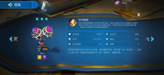 在打后排的时候可以说是一个控场棋子,但是脆皮扛不住伤害也是如此,遇见物理输出的棋子还好,遇见法师输出的棋子。基本上等死吧!