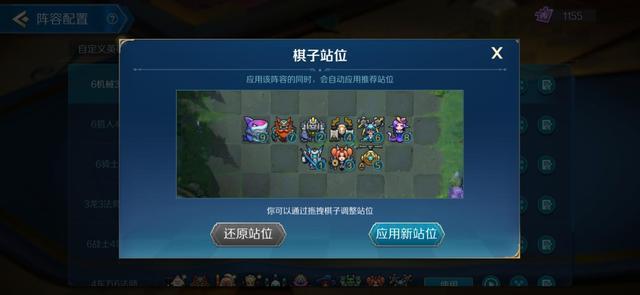 这个系统推荐阵容,比较合理啊!就是旁边九号和七号是两个双刺客,二号是一个战士,四号是一个坦克,六号是一个法术输出,我不知道为什么放在第一个位置啊,这我不发表任何意见,第八个是一个弓箭手,我也不知道为什么他放在前一位啊,这我很不解,后面一号在后面正常因为他一开局就突袭到敌人后面,三号是法师,然后放在后一排,很合理,五号是一个机械射手,放在最后一排也相当合理的。