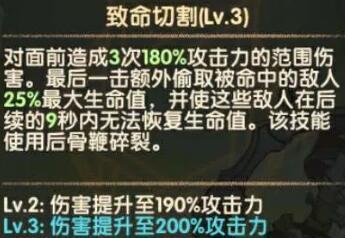 3次大范围x轴aoe伤害,最后一击百分比生命+回血,并使敌人无法恢复生命值。