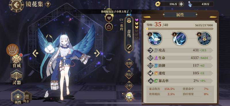 速度要高于青鸟和共工,速度达标后堆攻击暴击爆伤,灵活掌握。