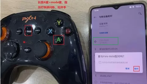 1、先连接上手柄蓝牙,连接成功后显示pxn-9608手柄型号。