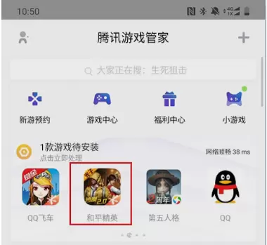 2、开启手机桌面的腾讯游戏管家,进行加载应用程序。