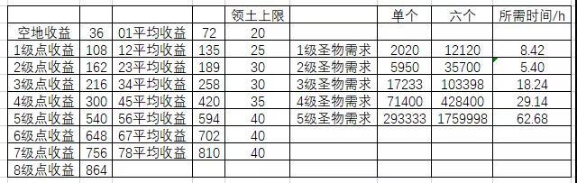 当然这是理想化的模型数据,挂机获得圣物百分百折合成圣物精华,实际售出是40%。而后期团队向也不可能领土全部占领资源点。