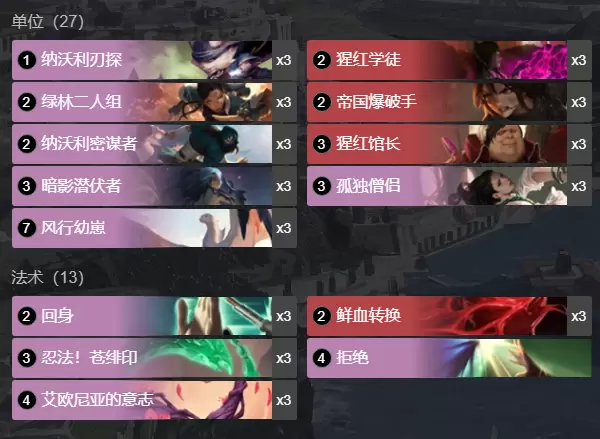 3费:暗影潜伏者x3,孤独僧侣x3;猩红馆长x3