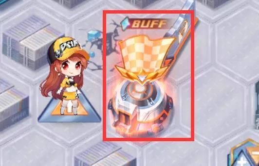外观是紫色写着buff的门,车手只需点击进入挑战,完成之后可获得中阶Buff奖励,选择完即可通过。