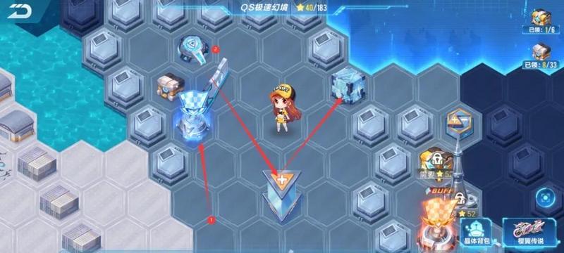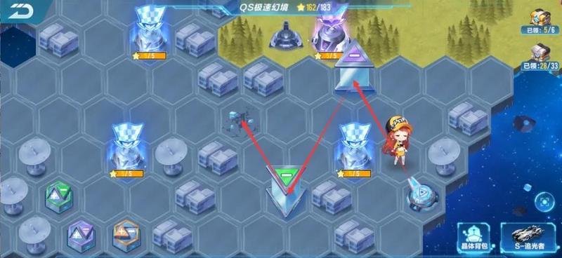 同样的如果QS晶体残块被能量台挡住了,车手只需像挑战紫色能量台一样,完成挑战即可开门,这样车手的激光炮就能精准击中残块了。