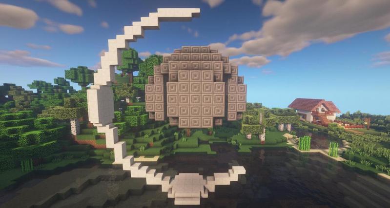 先用石英块搭出一个月牙的框架。