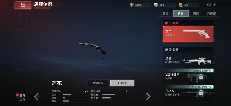 点评:左轮手枪。伤害偏高,射程一般,射速极低,优秀的精准度和良好的稳定性,但弹容少,容错率低。适合大神玩家。