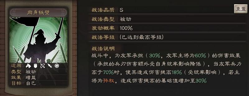 1.自带战法【肉身铁壁】