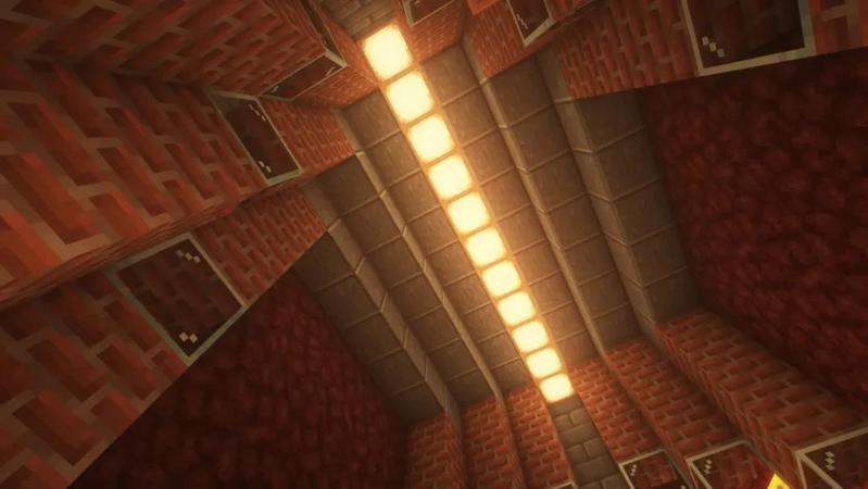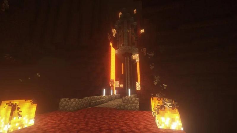 下界别墅的装饰主要是放置一些照明方块。在下界,岩浆是最好的照明液体,可以多使用一些。